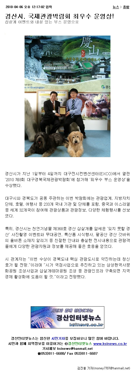 [언론자료] 제8회 대구경북 국제관광박람회 최우수 부스상