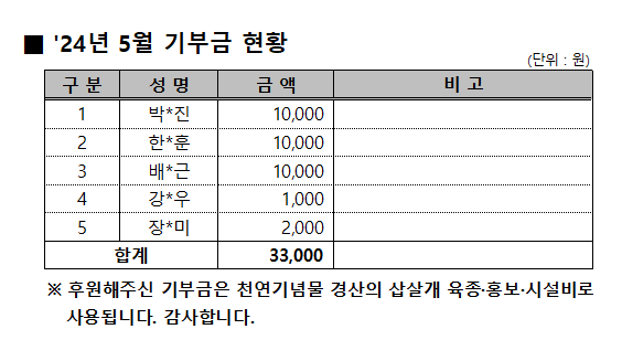 '24년 5월 기부금 현황 작성자:관리자 등록일:24-07-02 09:37 댓글:0건 조회수:792회 본문 목록 이전글 '24년 6월 기부금 현황 24.07.02 다음글 '24년 4월 기부금 현황 24.05.09 댓글목록 댓글목록 등록된 댓글이 없습니다.