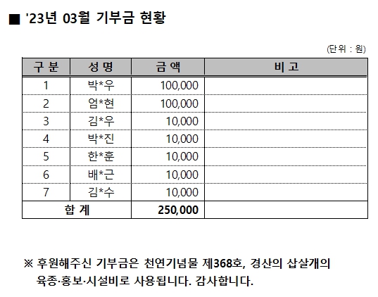 2023년 03월 기부금 현황 작성자:관리자 등록일:23-04-03 17:50 댓글:0건 조회수:788회 본문 목록 이전글 2022년 기부금 기탁액 및 활용실적 23.04.17 다음글 2023년 02월 기부금현황 23.03.02 댓글목록 댓글목록 등록된 댓글이 없습니다.