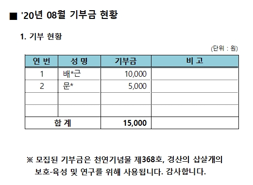 2020년 08월 기부금 현황 작성자:관리자 등록일:20-09-01 18:18 댓글:0건 조회수:5,273회 본문 2020년 08월 기부금 현황 목록 이전글 2020년 09월 기부금현황 20.10.05 다음글 2020년 07월 기부금 현황 20.08.03 댓글목록 댓글목록 등록된 댓글이 없습니다.