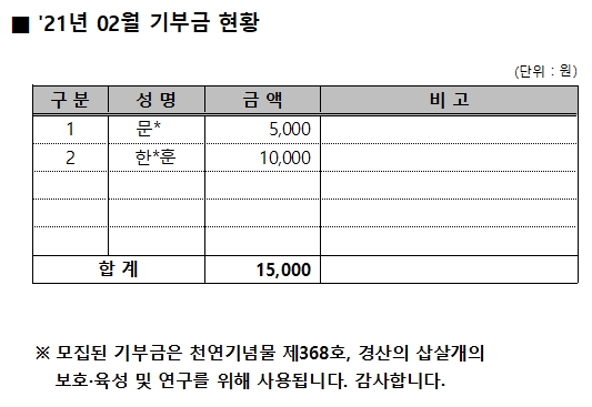 2021년 02월 기부금 현황 작성자:관리자 등록일:21-03-03 10:22 댓글:0건 조회수:3,654회 본문 목록 이전글 2020년 기부금 기탁액 및 활용실적 21.03.30 다음글 2021년 01월 기부금 현황 21.02.02 댓글목록 댓글목록 등록된 댓글이 없습니다.