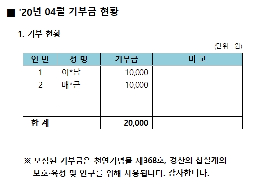 2020년 04월 기부금 현황 작성자:관리자 등록일:20-05-07 15:43 댓글:0건 조회수:7,611회 본문 2020년 04월 기부금 현황 목록 이전글 2020년 05월 기부금 현황 20.06.02 다음글 2020년 03월 기부금현황 20.04.01 댓글목록 댓글목록 등록된 댓글이 없습니다.