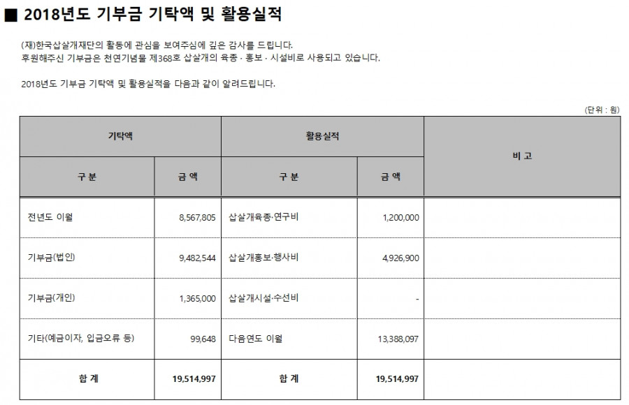 2018년 기부금 기탁액 및 활용실적 작성자:관리자 등록일:20-02-26 13:40 댓글:0건 조회수:7,959회 본문 목록 이전글 2019년 04월 기부금 현황 20.02.26 다음글 2019년 03월 기부금 현황 20.02.26 댓글목록 댓글목록 등록된 댓글이 없습니다.