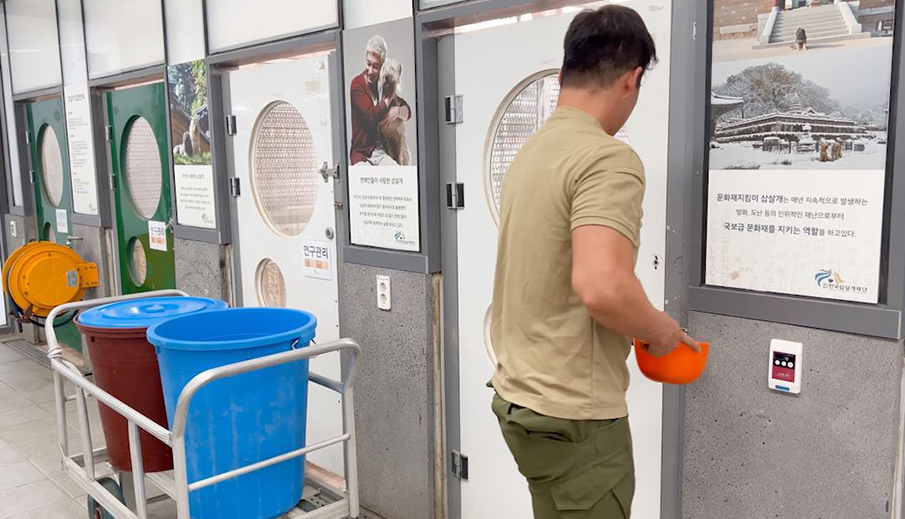 매일 견사 청소를 실시하여 쾌적한 사육 환경을 조성하고, 털 엉킴이나 피부 트러블을 예방하기 위해 정기적으로 미용을 실시하며 연령과 개체별 특성을 고려하여 사료를 배식합니다. 다양한 환경에 노출시켜 환경 적응력을 높이며 주기적인 개들과의 만남과 어울림, 사람들과의 교감 시간을 통해 사회성을 길러줍니다. 담당 수의사를 통한 진료와 검진으로 삽살개의 건강을 책임질뿐만 아니라 기생충 구충과 백신 예방접종을 통해 질병과 감염병으로부터 안전하게 관리합니다.